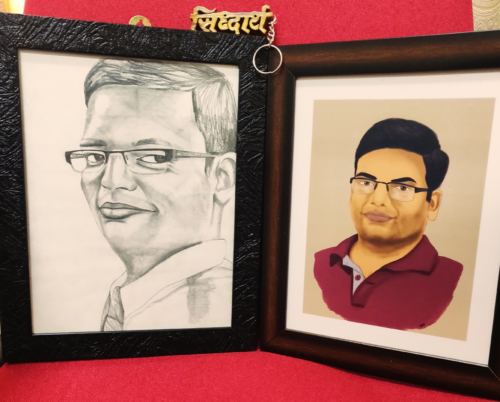 P.S. - the sketch and the painting and the keyring were gifted to me by some special friends, students, well-wishers. Don't judge it adversely though, for the portraits are well-made. It's the face that's twisted.